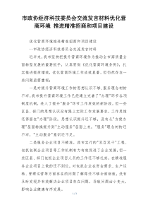 市政协经济科技委员会提出,优化营商环境需强化政策支持,推进精准招商与项目建设,助力经济高质量发展。下面是网友整理编辑的市政协经济科技委员会交流发言材料优化营商环境 推进精准招商和项目建设相关范文,供大家参考学习,喜欢就下载支持!