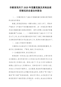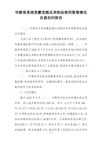 市教育局对党徽党旗及其制品使用情况进行了全面自查,发现问题及时整改,确保规范使用。以下由网友整理分享的“市教育局关于2025年党徽党旗及其制品使用情况的自查自纠报告”相关材料,便您学习参考,喜欢就分享给朋友吧!