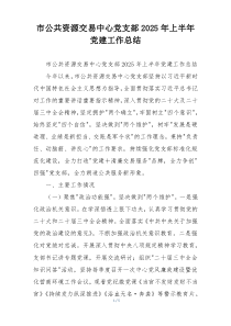 市公资源交易中心党支部上半年加强组织建设,深化理论学习,创新活动形式,提升服务水平,党建工作取得显著成效。以下是阿拉网友分享的“市公共资源交易中心党支部2025年上半年党建工作总结”,供您学习参考,希望有所用途!