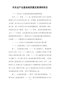 调研揭示农业产业基地需优化结构,提升科技水平,加强市场对接,促进可持续发展,前景广阔!以下由网友整理分享的“市农业产业基地高质量发展调研报告”相关材料,便您学习参考,喜欢就分享给朋友吧!
