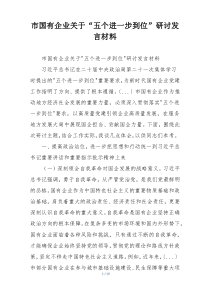 市国有企业在研讨中提出,需进一步深化体制改革,强化党的领导,优化战略布局,提升管理效能,增强创新能力。下面是网友整理分享的市国有企业关于“五个进一步到位”研讨发言材料相关资料,供大家学习参考,喜欢就分享吧!
