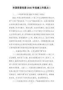 加强政治建设,深化理论武装,夯实基层基础,推进正风肃纪,激发创新活力!下面是网友整理分享的市国资委党委2025年党建工作要点1相关资料,供大家学习参考,喜欢就分享吧!
