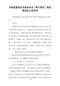会议强调,要强化食品安全责任落实,加强监管力度,确保人民群众饮食安全。公文包网友为您分享整理的“市场监管局长在食品安全“两个责任”落实推进会上的讲话”范文资料,以供您参考学习之用,希望喜欢。