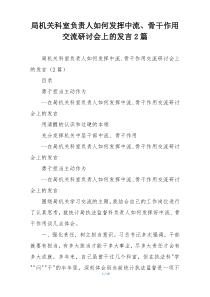 科室负责人应积极沟通协调,明确职责定位,强化团队建设,提升工作效率,推动政策落实。以下由网友整理分享的“局机关科室负责人如何发挥中流、骨干作用交流研讨会上的发言2篇”相关材料,便您学习参考,喜欢就分享给朋友吧!