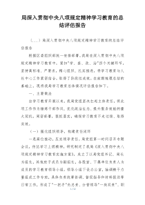 局深入贯彻中央八项规定精神,通过学习教育活动强化了纪律意识,提升了工作作风,成效显著。以下是阿拉网友分享的“局深入贯彻中央八项规定精神学习教育的总结评估报告”,供您学习参考,希望有所用途!