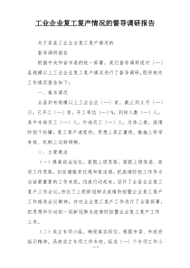 复工复产有序推进,多数企业恢复生产,员工返岗率高,产业链供应链逐步畅通,市场信心增强!以下由网友整理分享的工业企业复工复产情况的督导调研报告相关文档,供您学习参考,喜欢就分享吧!