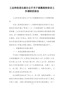 工信部办公厅对部属高校信访工作进行调研,总结了现状、问题及建议,如何进一步提升信访工作效率?公文包网友为您分享整理的“工业和信息化部办公厅关于部属高校信访工作调研的报告”范文资料,以供您参考学习之用,希望喜欢。