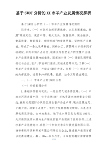 基于SWOT分析,从优势、劣势、机会与威胁四方面全面探讨了XX市羊产业的发展现状及前景。公文包网友为您分享整理的“基于SWOT分析的XX市羊产业发展情况探析”范文资料,以供您参考学习之用,希望喜欢。