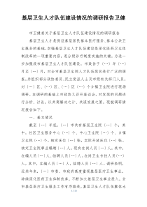 调研显示,基层卫生人才队伍存在数量不足、结构不合理、服务能力待提升等问题。公文包网友为您分享整理的“基层卫生人才队伍建设情况的调研报告卫健”范文资料,以供您参考学习之用,希望喜欢。