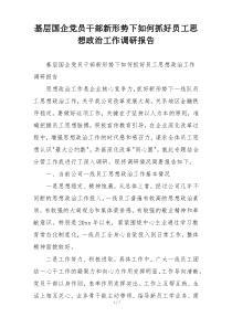新形势下基层国企党员干部需创新方法加强员工思想政治教育,提升团队凝聚力和战斗力,如何更有效地实施?以下是阿拉网友分享的“基层国企党员干部新形势下如何抓好员工思想政治工作调研报告”,供您学习参考,希望有所用途!