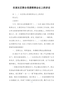 会议强调加强合作,共促社区发展,提升居民生活质量,携手构建和谐家园,大家共同努力的方向明确了吗?公文包网友为您分享整理的“在某社区联合党委联席会议上的讲话”范文资料,以供您参考学习之用,希望喜欢。