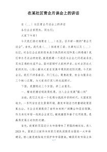 在社区青企月谈会上,强调了青年企业家应积极创新,勇于担当社会责任,共同推动社区经济繁荣发展。以下由网友整理分享的“在某社区青企月谈会上的讲话”相关材料,便您学习参考,喜欢就分享给朋友吧!