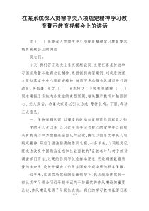 会议强调,要深入学习中央八项规定精神,加强警示教育,提升廉洁自律意识,确保制度落实到位,如何更有效地推进?以下是阿拉网友分享的“在某系统深入贯彻中央八项规定精神学习教育警示教育视频会上的讲话”,供您学习参考,希望有所用途!