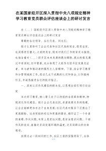 会议强调落实中央八项规定精神,要求深入自查自纠,加强作风建设,确保教育成效。下面是网友整理分享的在某县深入贯彻中央八项规定精神学习教育自查评估座谈会上的讲话相关资料,供大家学习参考,喜欢就分享吧!