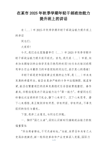 在年轻干部政治能力提升班上,强调了坚定理想信念、增强政治定力的重要性,号召大家勇担时代重任!下面网友分享多篇相关内容供您参考学习,希望有您喜欢的。