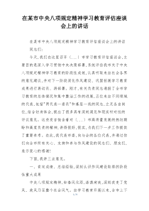 会议强调持续深入学习中央八项规定精神,加强作风建设,确保各项要求落到实处,推动形成良好政治生态。下面是网友整理分享的在某市中央八项规定精神学习教育评估座谈会上的讲话相关资料,供大家学习参考,喜欢就分享吧!