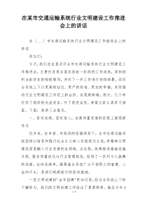会议强调加强交通运输系统文明建设,提升服务水平,树立良好形象,如何有效落实?公文包网友为您分享整理的“在某市交通运输系统行业文明建设工作推进会上的讲话”范文资料,以供您参考学习之用,希望喜欢。
