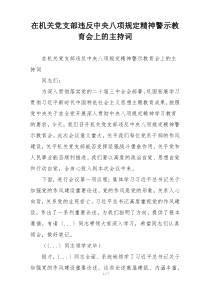会议强调遵守中央八项规定精神的重要性,要求全体成员引以为戒,严格自律,共同营造风清气正的工作环境!以下是阿拉网友分享的“在机关党支部违反中央八项规定精神警示教育会上的主持词”,供您学习参考,希望有所用途!