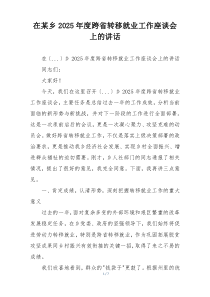会议强调加强跨省就业合作,促进劳动力有序流动,提高就业质量和服务水平,如何更好地实现这一目标?以下由网友整理分享的“在某乡2025年度跨省转移就业工作座谈会上的讲话”相关材料,便您学习参考,喜欢就分享给朋友吧!