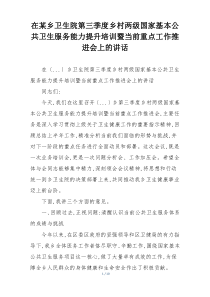 会议强调提升国家基本公共卫生服务能力,推进当前重点工作,确保服务质量和效率,如何有效落实?以下是小编为您整理分享的“在某乡卫生院第三季度乡村两级国家基本公共卫生服务能力提升培训暨当前重点工作推进会上的讲话”相关内容,供您学习参考!