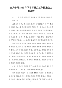 会议强调创新引领发展,聚焦核心业务突破,提升团队执行力,强化市场竞争力,如何实现目标?下面是小编为您整理的在某公司2025年下半年重点工作推进会上的讲话范例,仅供参考,希望对您有所帮助。