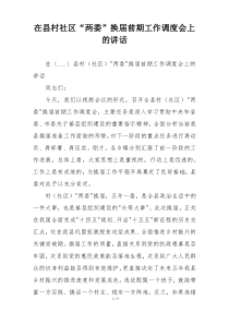 强调换届工作的重要性,要求各村社区高度重视,确保程序规范、纪律严明,选出优秀干部。下面是小编为您整理的在县村社区“两委”换届前期工作调度会上的讲话范例,仅供参考,希望对您有所帮助。