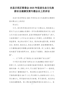 会议强调,要强化生态保护,推动文化旅游深度融合,确保安全健康发展,提升示范区综合竞争力。以下是阿拉网友分享的“在县示范区管委会2025年促进生态文化旅游安全健康发展专题会议上的讲话”,供您学习参考,希望有所用途!
