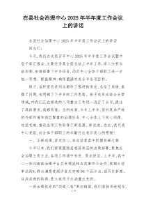 会议强调,要深化社会治理创新,提升服务效能,加强队伍建设,确保社会稳定,促进和谐发展。以下由网友整理分享的“在县社会治理中心2025年半年度工作会议上的讲话”相关材料,便您学习参考,喜欢就分享给朋友吧!