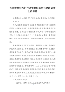 强调党建引领,促进县村联动,共谋发展新篇,如何更好地实现资源共享与优势互补?下面是网友整理分享的在县级单位与村社区党组织结对共建培训会上的讲话相关资料,供大家学习参考,喜欢就分享吧!