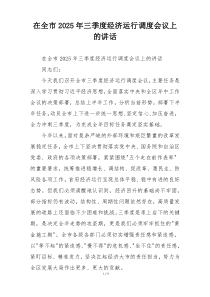 会议强调,要准确把握经济形势,聚焦重点任务,强化措施落实,确保完成全年经济发展目标。公文包网友为您分享整理的“在全市2025年三季度经济运行调度会议上的讲话”范文资料,以供您参考学习之用,希望喜欢。