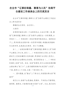 会议强调构建协商平台,促进民众参与决策,提升社会治理效能,如何更好地落实成为关键?以下是小编为您整理分享的“在全市“辽事好商量,聊事为人民”协商平台建设工作座谈会上的交流发言”相关内容,供您学习参考!