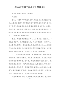 会议强调加强军民团结,推进双拥工作创新发展,共同谱写新时代双拥工作新篇章。下面是网友整理分享的在全市双拥工作会议上的讲话1相关资料,供大家学习参考,喜欢就分享吧!