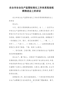 会议强调了安全生产监管标准化的重要性,要求各单位加强落实,确保全市安全形势持续稳定!以下由网友整理分享的在全市安全生产监管标准化工作体系现场视频推进会上的讲话相关文档,供您学习参考,喜欢就分享吧!
