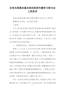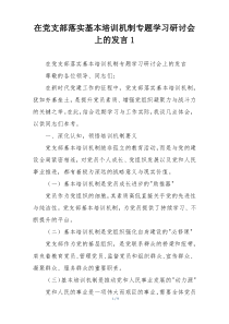 在党支部落实基本培训机制专题学习研讨会上,强调了加强理论学习,提高党员素质,完善培训体系,确保教育实效。以下由网友整理分享的“在党支部落实基本培训机制专题学习研讨会上的发言1”相关材料,便您学习参考,喜欢就分享给朋友吧!