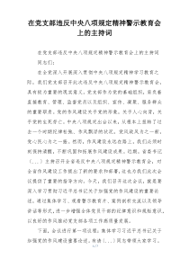 会议强调遵守中央八项规定精神的重要性,深入剖析案例,警示全体党员引以为戒,如何确保会议精神落实到位?下面是网友整理编辑的在党支部违反中央八项规定精神警示教育会上的主持词相关范文,供大家参考学习,喜欢就下载支持!
