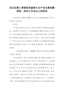 会议强调安全生产与消防防汛工作的重要性,要求各部门加强隐患排查,确保措施落实到位,保障人民生命财产安全,如何有效推进?以下由网友整理分享的在全区第三季度防范重特大生产安全事故暨消防、防汛工作会议上的讲话相关文档,供您学习参考,喜欢就分享吧!