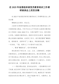 加强党员教育培训,创新方式方法,提升培训实效,为新时代发展提供坚强组织保证!公文包网友为您分享整理的“在2025年省委组织部党员教育培训工作调研座谈会上的发言稿”范文资料,以供您参考学习之用,希望喜欢。