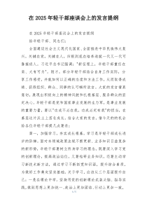 强调年轻干部需增强责任感使命感,持续学习提升能力,勇于担当作为,推动创新发展。下面是网友整理编辑的在2025年轻干部座谈会上的发言提纲相关范文,供大家参考学习,喜欢就下载支持!