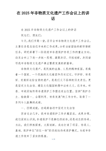 强调了非物质文化遗产保护的重要性,提出加强传承、创新传播方式、扩大国际交流与合作。公文包网友为您分享整理的“在2025年非物质文化遗产工作会议上的讲话”范文资料,以供您参考学习之用,希望喜欢。