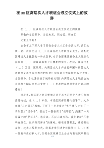 在高层次人才联谊会成立之际,期待各位携手共进,共创辉煌未来。公文包网友为您分享整理的“在xx区高层次人才联谊会成立仪式上的致辞”范文资料,以供您参考学习之用,希望喜欢。