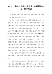 总结经验亮点,部署未来任务,强化责任担当,共同开创社会治理新局面!下面是小编为您整理的在2025年全市基层社会治理工作现场推进会上的主持词范例,仅供参考,希望对您有所帮助。