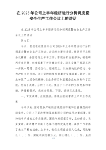 会议强调了经济运行优化与安全生产的重要性,提出多项改进措施,以确保稳定增长和安全发展,如何落实?以下由网友整理分享的“在2025年公司上半年经济运行分析调度暨安全生产工作会议上的讲话”相关材料,便您学习参考,喜欢就分享给朋友吧!