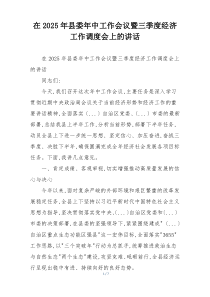 会议强调了经济发展目标,部署了下半年重点工作,要求各部门加强协作,确保完成全年任务。下面是网友整理分享的在2025年县委年中工作会议暨三季度经济工作调度会上的讲话相关资料,供大家学习参考,喜欢就分享吧!