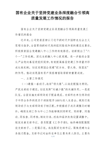国有企业通过深化党建与业务融合,强化党的领导核心作用,推动企业高质量发展,取得显著成效。下面是网友整理分享的国有企业关于坚持党建业务深度融合引领高质量发展工作情况的报告相关资料,供大家学习参考,喜欢就分享吧!