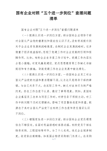 国有企业围绕目标定位、深化改革、结构调整、创新驱动、党的建设五个方面查摆问题,推动全面进步。下面是小编为您整理的国有企业对照“五个进一步到位”查摆问题清单范例,仅供参考,希望对您有所帮助。