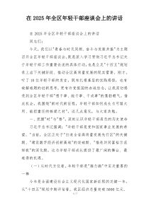 强调青年干部重要性,鼓励创新担当,提升能力素质,为发展贡献力量!下面是小编为您整理的在2025年全区年轻干部座谈会上的讲话范例,仅供参考,希望对您有所帮助。
