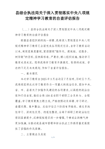 县综合执法局深入学习中央八项规定精神,全面自查评估,确保各项要求落实到位。以下由公文包网友为您分享的范文资料,供您参考学习之用。
