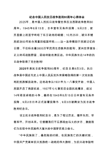 铭记历史,缅怀先烈,珍爱和平,警示未来,传承抗战精神,凝聚民族力量。下面是网友整理编辑的纪念中国人民抗日战争胜利80周年心得体会范文相关范文,供大家参考学习,喜欢就下载支持!
