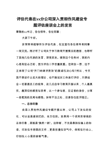 评估代表发言强调作风建设重要性,指出需持续改进与落实,确保成效显著!公文包网友为您分享整理的“评估代表在分公司深入贯彻作风建设专题评估座谈会上的发言”范文资料,以供您参考学习之用,希望喜欢。