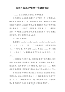 对县社区规范化管理工作进行了深入调研,总结了经验与问题,提出了改进措施。公文包网友为您分享整理的“县社区规范化管理工作调研报告”范文资料,以供您参考学习之用,希望喜欢。